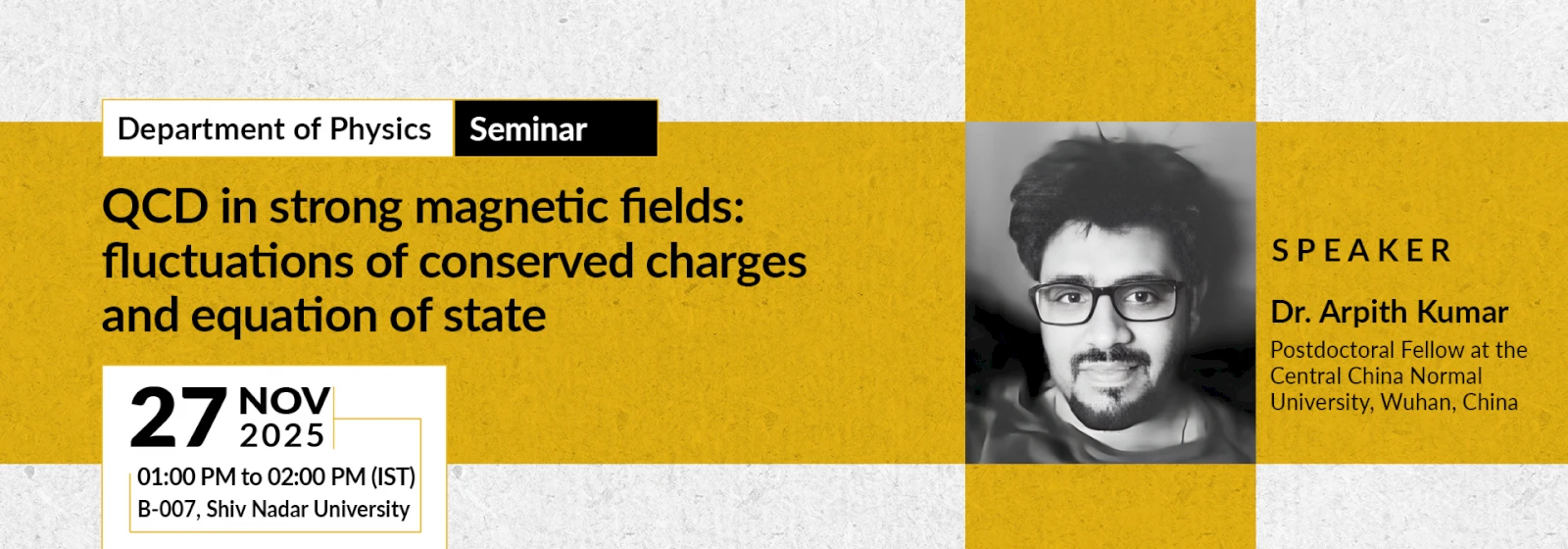Abstract: Strong magnetic fields---attaining magnitudes comparable to the characteristic interaction scales---can significantly affect the equilibrium properties and bulk thermodynamics of strongly interacting quantum chromodynamics (QCD) matter relevant to the early universe, neutron-star interiors, and heavy-ion collisions. In off-central heavy-ion collisions, a short-lived and strong magnetic field is expected to be generated; however, directly measuring their imprints, such as chiral magnetic effects, remains challenging. In this talk, we propose baryon-electric charge conserved charges correlations $\chi^{\rm BQ}_{11}$ and the chemical potential ratio $\mu_{\rm Q}/\mu_{\rm B}$ as effective probes for magnetic fields in heavy-ion collisions [1, 2]. This is based on our (2+1)-flavor QCD lattice simulations at physical pion masses, focusing on the pseudocritical temperature regime. To bridge theoretical predictions with experiment, we construct proxy observables and implement systematic kinematic cuts within the hadron resonance gas (HRG) framework to emulate detector acceptances of the STAR and ALICE experiments. Furthermore, extending this investigation, we discuss the QCD equation of state and examine the leading-order thermodynamic coefficients for strangeness-neutral scenarios up to $eB =\simeq 0.8 GeV^2 \sim 45 M_\pi^2$, revealing intriguing non-monotonic structures [3].
