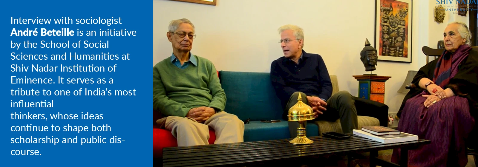Interview with Sociologist André Béteille is an initiative by the School of Social Sciences and Humanities at Shiv Nadar Institution of Eminence . It serves as a tribute to one of India's most influential thinkers, whose ideas continue to shape both scholarship and public discourse.