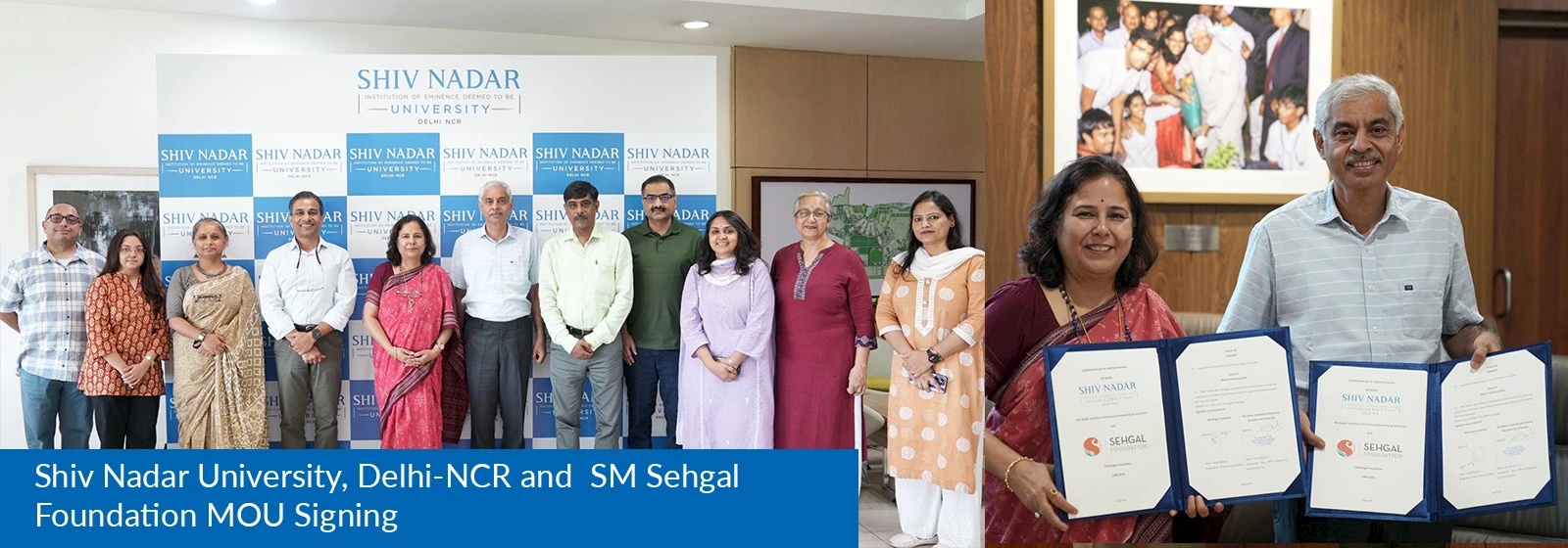 We are pleased to announce the signing of a Memorandum of Understanding (MOU) between Shiv Nadar Institution of Eminence and the SM Sehgal Foundation . This partnership represents a significant milestone in expanding our network of domestic collaborations and reinforces our commitment to impactful education and research.