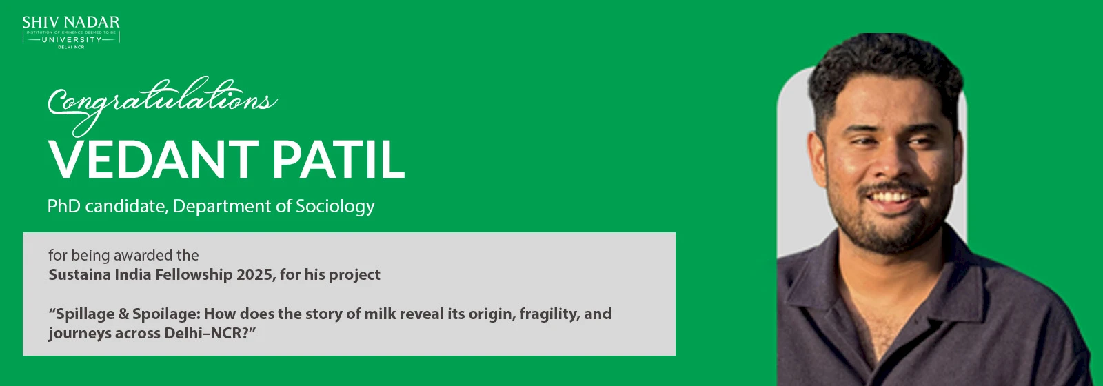 Vedant Patil , a third-year Ph.D. candidate from the Department of Sociology, has been awarded the Sustaina india Fellowship 2025.